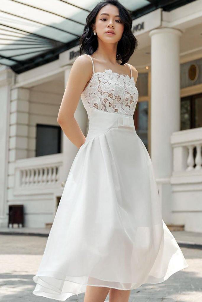 It’s perfect for special occasions where you want to turn heads. The black hue adds a touch of mystery, while the feminine details keep it elegant. Also available in White