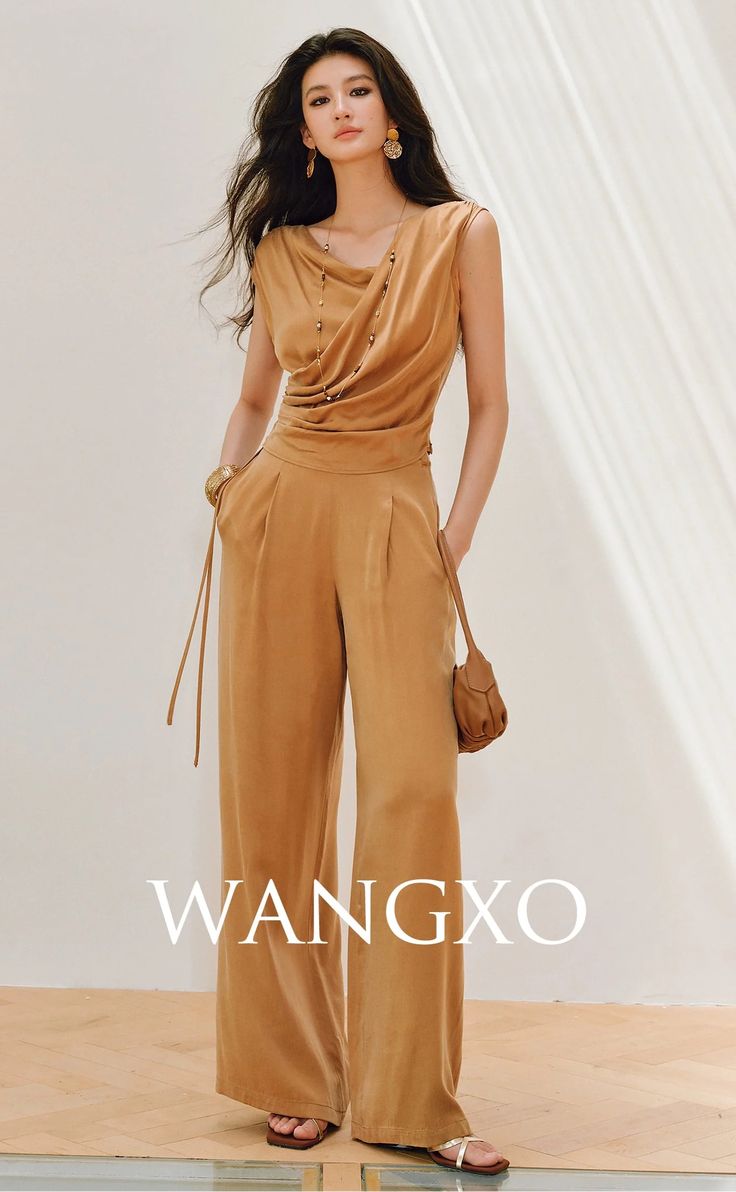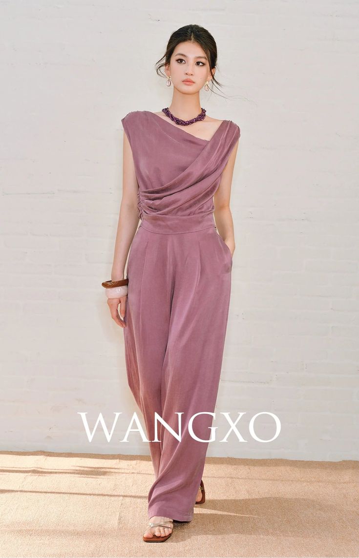 Get the look:WANGOXO Sleek Cupro Drape Slanted Shoulder Set