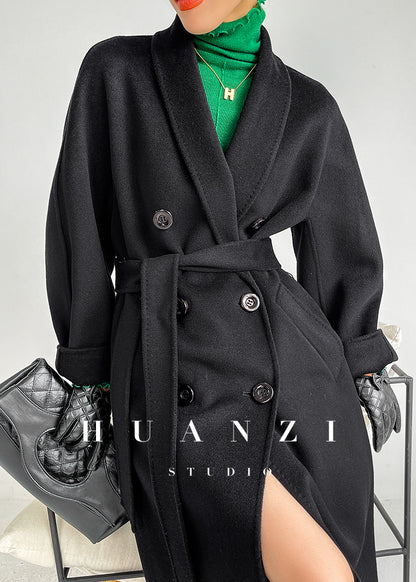 This maxi-length, double-breasted wool coat (from brand TINY IN) brings refined warmth and structure.